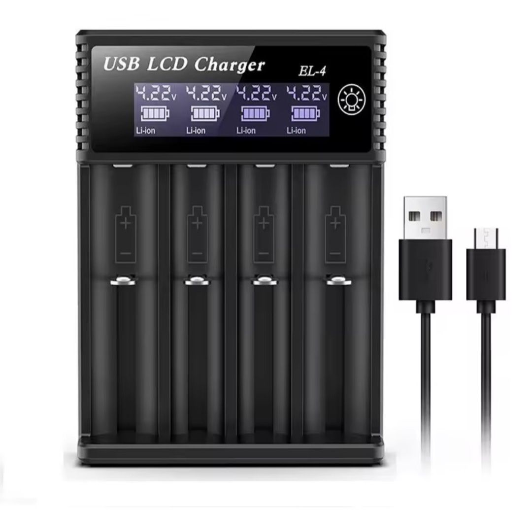 Зарядное устройство для аккумуляторов 18650, 4-слотовый ЖК-дисплей