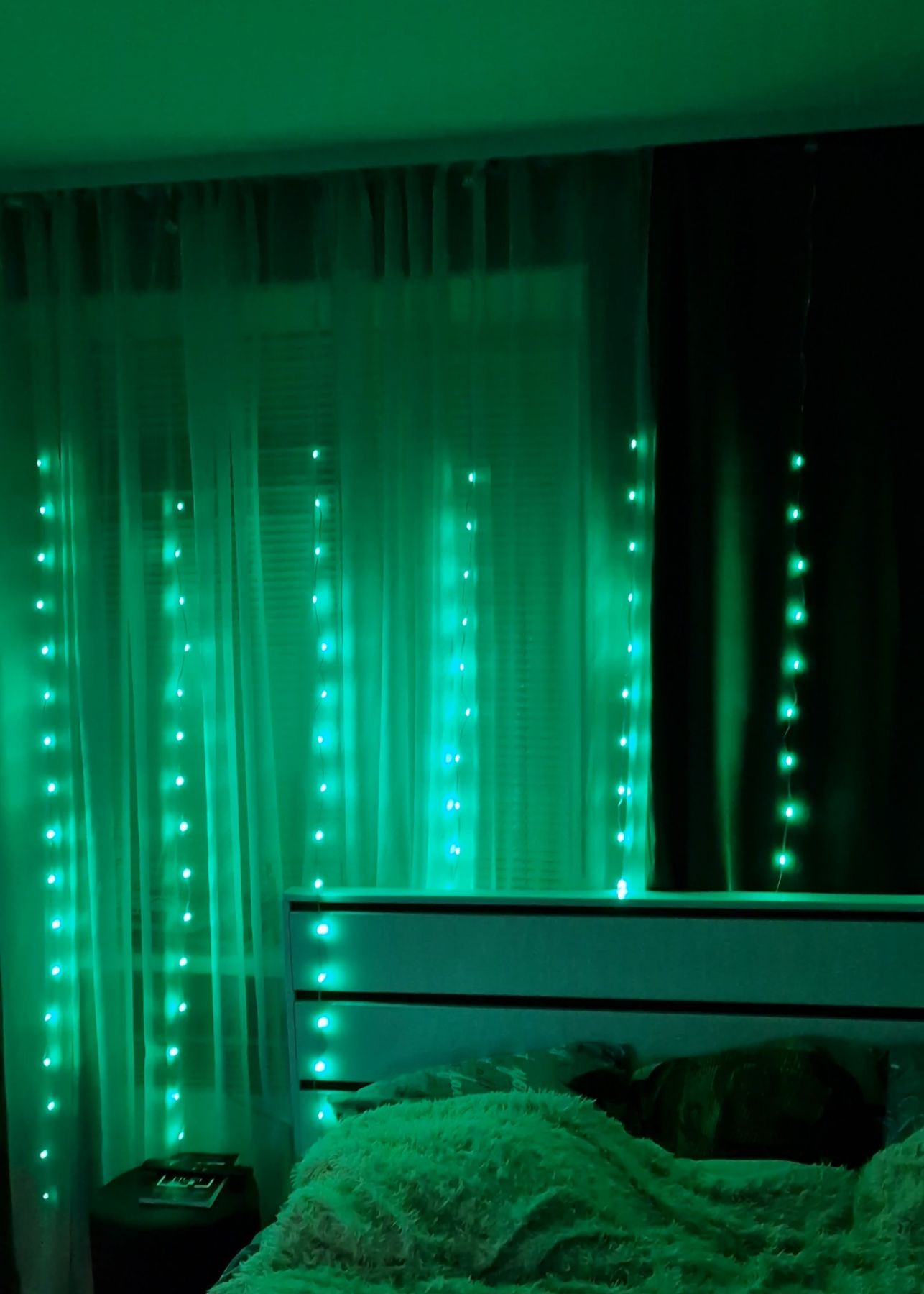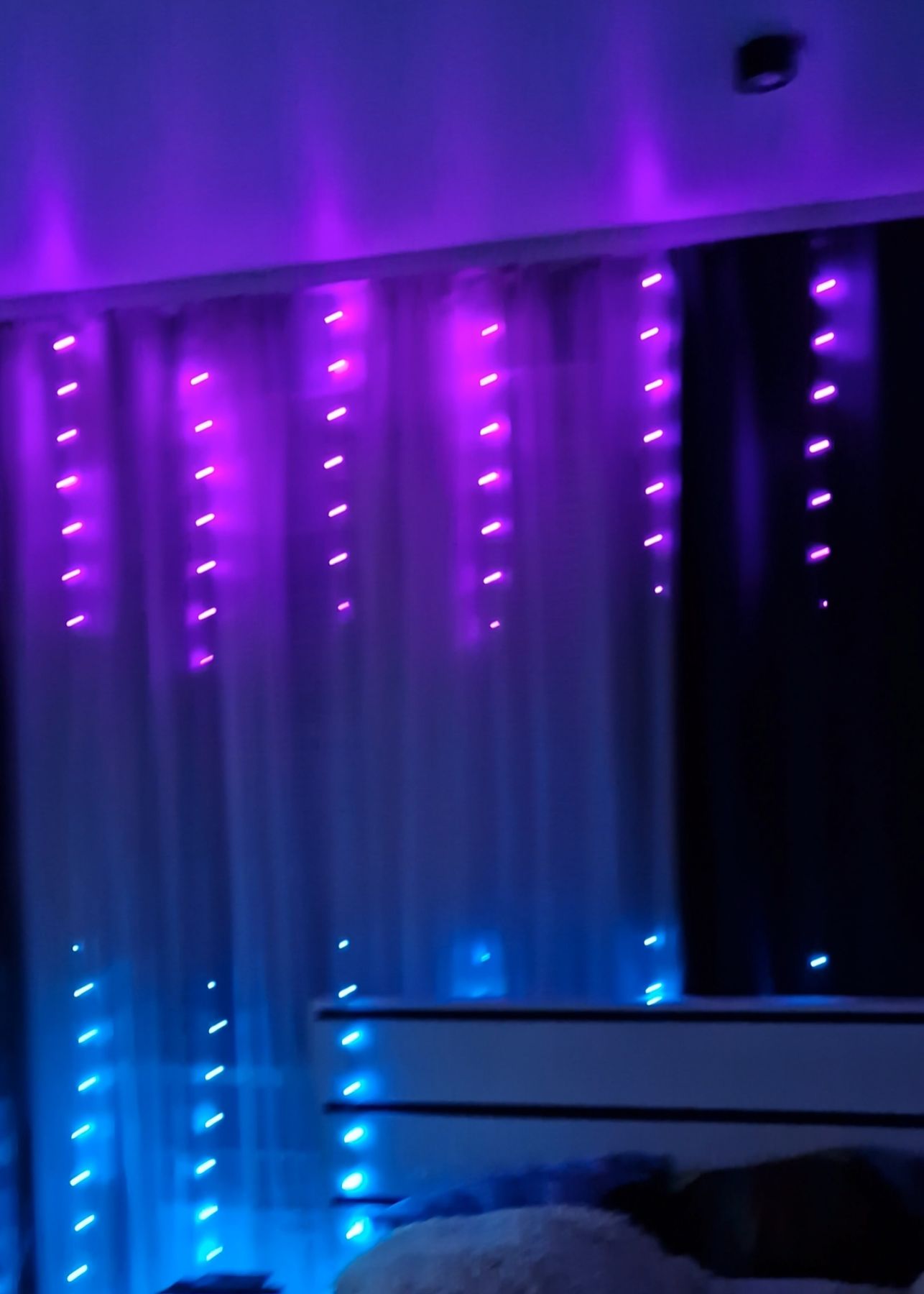 Светодиоды не нагреваются и не плавятся вне зависимости от того, сколько гирлянда находится в режиме работы. Управление подсветкой осуществляется с помощью контроллера, позволяющего установить приложения, которые отлично подойдут для создания разнообразных световых сценариев.