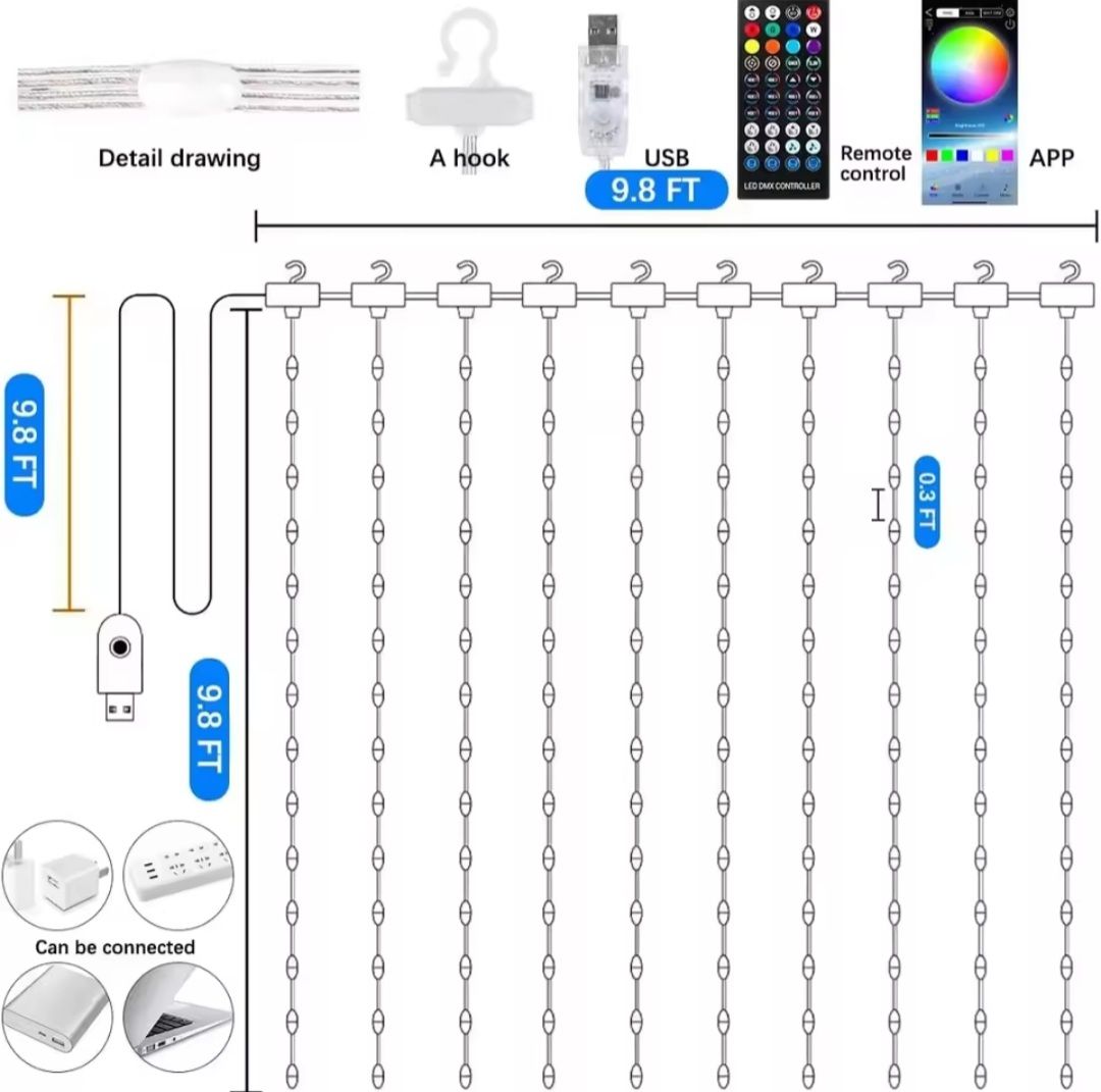 Гірлянда розумна штора прозорий провід від USB, 3 на 2м Usb