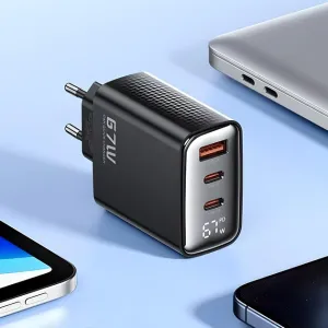 Зарядное устройство для Toocki GaN 67W с LED-дисплеем и 3 портами (2 USB-C + 1 USB-A, QC 4.0, PD 3.1) Мощная зарядка